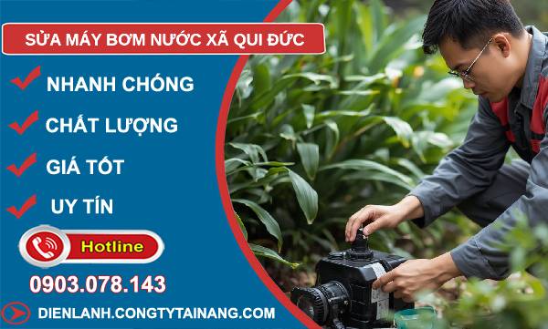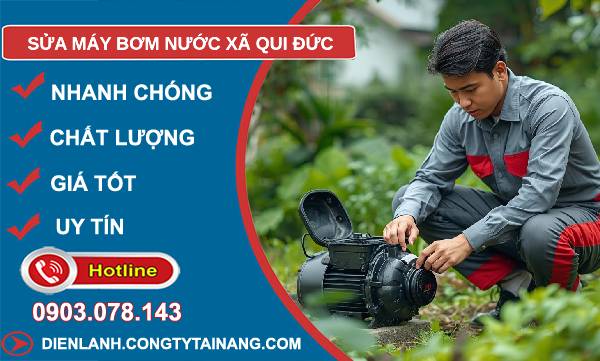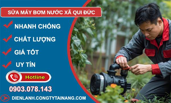 Nếu bạn đang cần dịch vụ sửa máy bơm nước xã Qui Đức, hãy chọn Công ty điện lạnh Tài Năng – đơn vị uy tín, chuyên nghiệp, phục vụ tận nhà. Với đội ngũ kỹ thuật viên lành nghề, linh kiện chính hãng và thái độ phục vụ tận tâm, chúng tôi tự tin khắc phục mọi lỗi như sửa máy bơm nước Panasonic, Pentax, Sena, Teco; các lỗi phổ biến như không lên nước, không chạy, chạy yếu, kêu to, rò rỉ, chập điện, không tự ngắt, chạy nhưng không hút, nóng, hỏng cánh quạt; và các loại bơm tăng áp, bơm chìm, bơm ly tâm, giếng khoan, hỏa tiễn, công nghiệp.