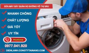 Công ty tài năng Sửa Máy Sấy Quần Áo Đường Võ Thị Sáu là một trong những địa chỉ đáng tin cậy khi khách hàng cần sửa chữa, bảo trì máy sấy quần áo. Với đội ngũ nhân viên chuyên nghiệp, kinh nghiệm và tận tình cùng với phương châm hoạt động “Sửa chữa nhanh chóng, chất lượng tốt, giá cả hợp lý”, công ty đảm bảo mang đến cho khách hàng những dịch vụ sửa chữa, bảo trì máy sấy quần áo chất lượng cao, hiệu quả và đáng tin cậy. Nếu bạn đang gặp sự cố với máy sấy quần áo hoặc muốn mua máy mới, hãy đến với công ty tài năng Sửa Máy Sấy Quần Áo Đường Võ Thị Sáu để được hỗ trợ tốt nhất.